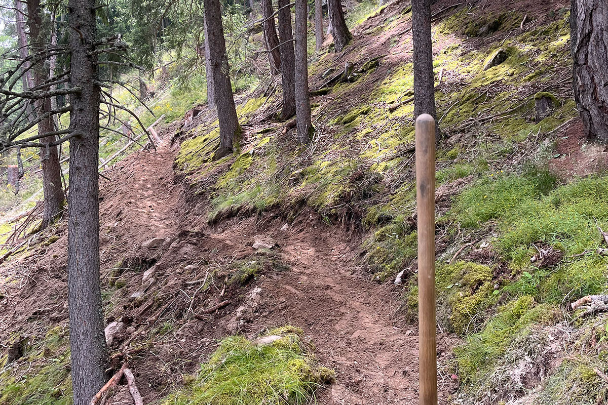 Am Vormittag werden wir in kleinen Gruppen etwa 2–3 Stunden an verschiedenen Trailabschnitten arbeiten. Dabei zeigt sich schnell, ob die Idylle aus Trailbau-Videos der Realität standhält.